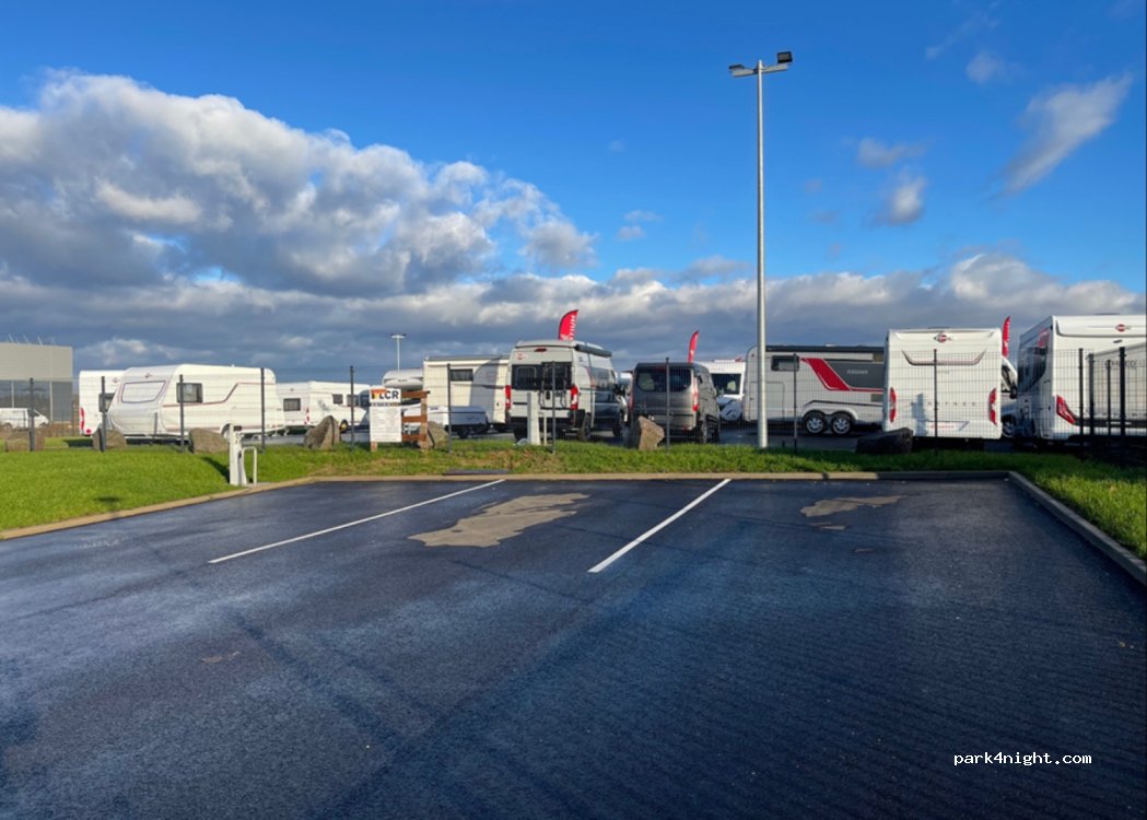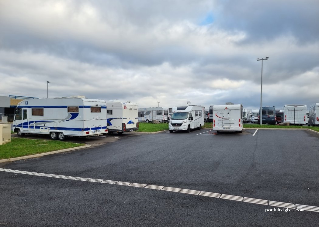 Merci à ce concessionnaire pour ces emplacements ! Malgré un petit bruit de fond dû à la proximité de la départementale et des trains en journée, la nuit fut calme et reposante. La lumière qui s’éteint la nuit est un plus non négligeable :)