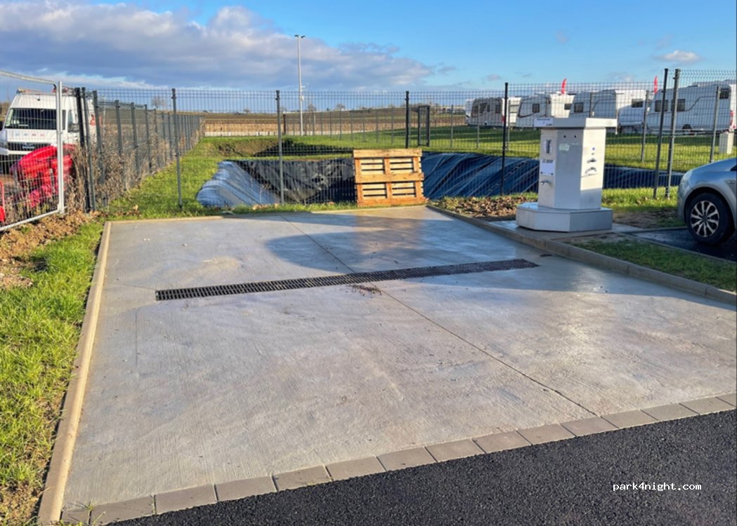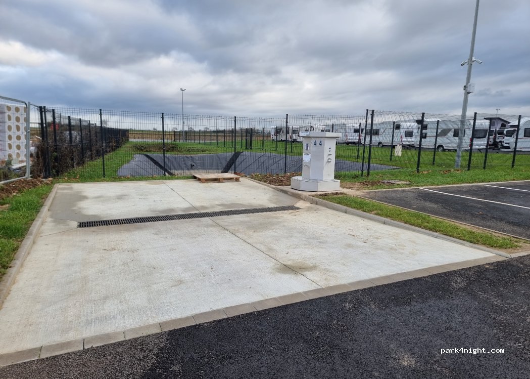 Ottimo spot per chi viaggia verso Strasburgo, piazzole abbastanza in piano su asfalto. Zona molto tranquilla appena uscita dalla D83. Impianto nuovo che eroga con 2€ o 10 minuti di acqua potabile oppure 12 ore di elettricità. possibilità di scarico acque grigie e nere oltre al carico. unico appunto manca un cestino. Top