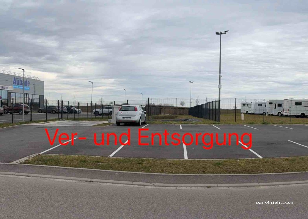 Área muy tranquila con los servicios de pago menos el vaciado ( precio económico 2 euros ) las parcelas con un poco de desnivel . El área está justo al lado de una empresa y tiene cámaras de vigilancia para ambos lados . A 25 min de Estrasburgo. Por ponerle una pega no tiene contenedores de basura . GRACIAS