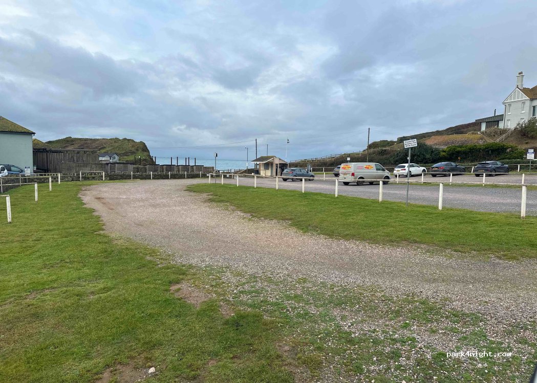 Parking sûr et plat à côté d'un pub local avec une excellente cuisine et un personnel sympathique. Juste en face de la plage. Super endroit. Aucune installation et faites attention à partir avant la fin de votre temps !