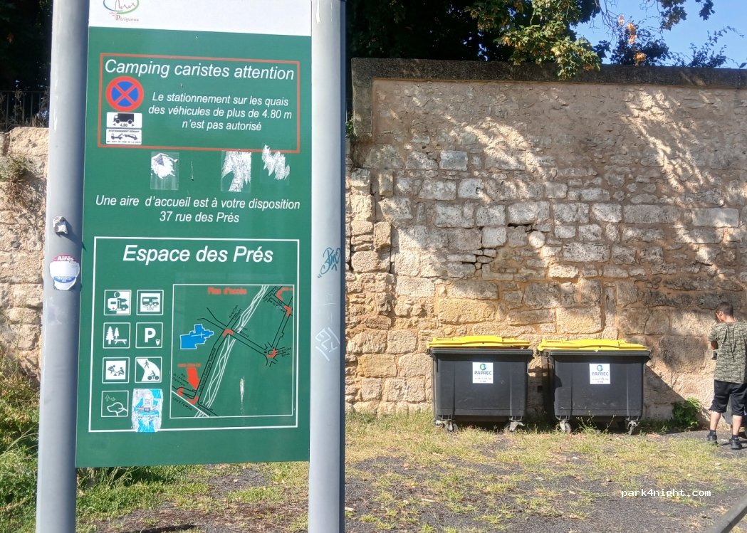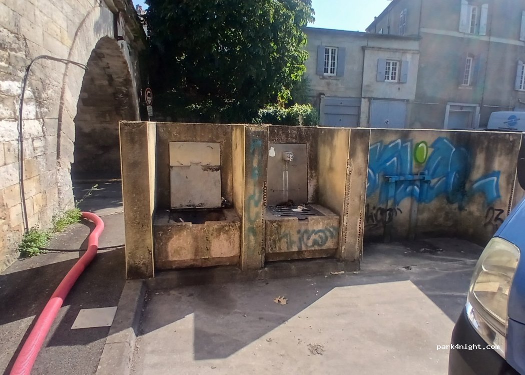 Environnement sale, pas de branchement eau potable. Vidange toilette et eau grise possible seulement. Eau juste pour rincer les toilettes. Prendre l’aire de camping-car pour plus de confort gratuit et accessible gratuitement en journée.