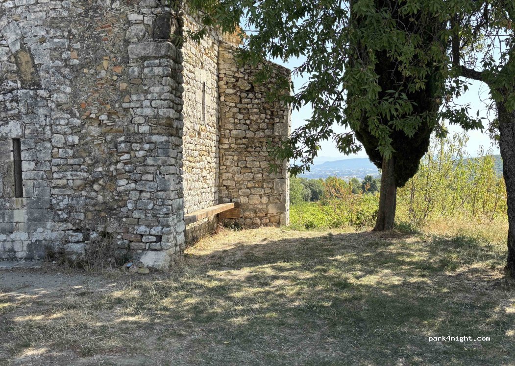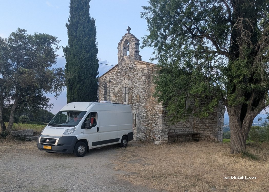 Emplacement superbe, cependant le terrain ainsi que la chapelle sont privés, le camping est toléré par le propriétaire vigneron que nous avons rencontré. Il est très sympathique et nous a renseigné sur les endroits a visiter dans la région. Merci de respecter l’endroit.