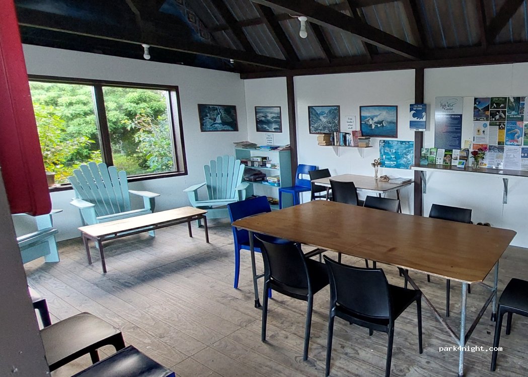 Okarito Low Cost Campingplatz "Okarito Campground", Umgeben von Bäumen ohne Aussicht.