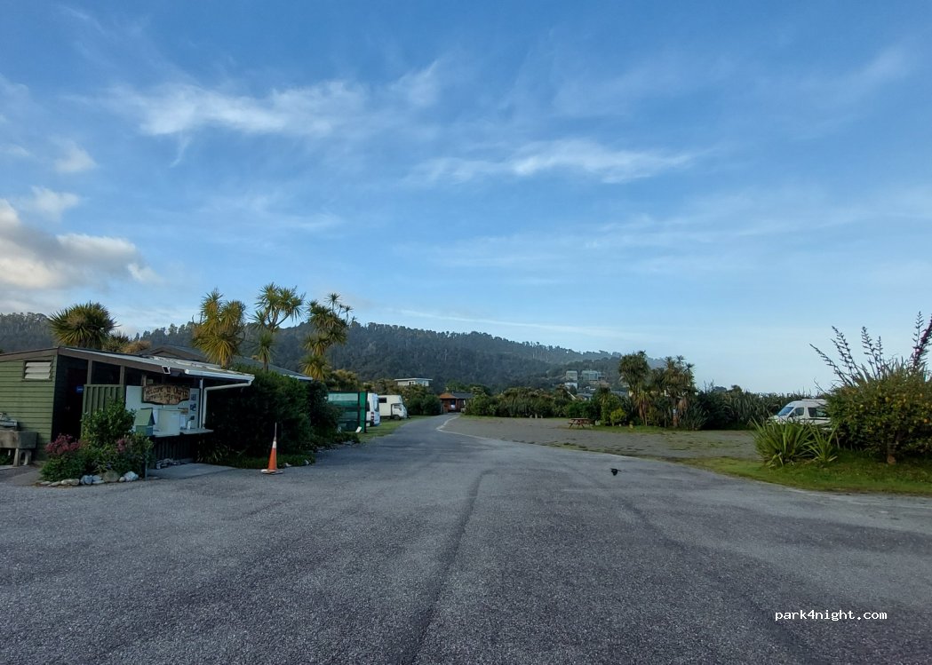 Okarito Camping bas prix "Okarito Campground", Entouré d'arbres pas de vue.
