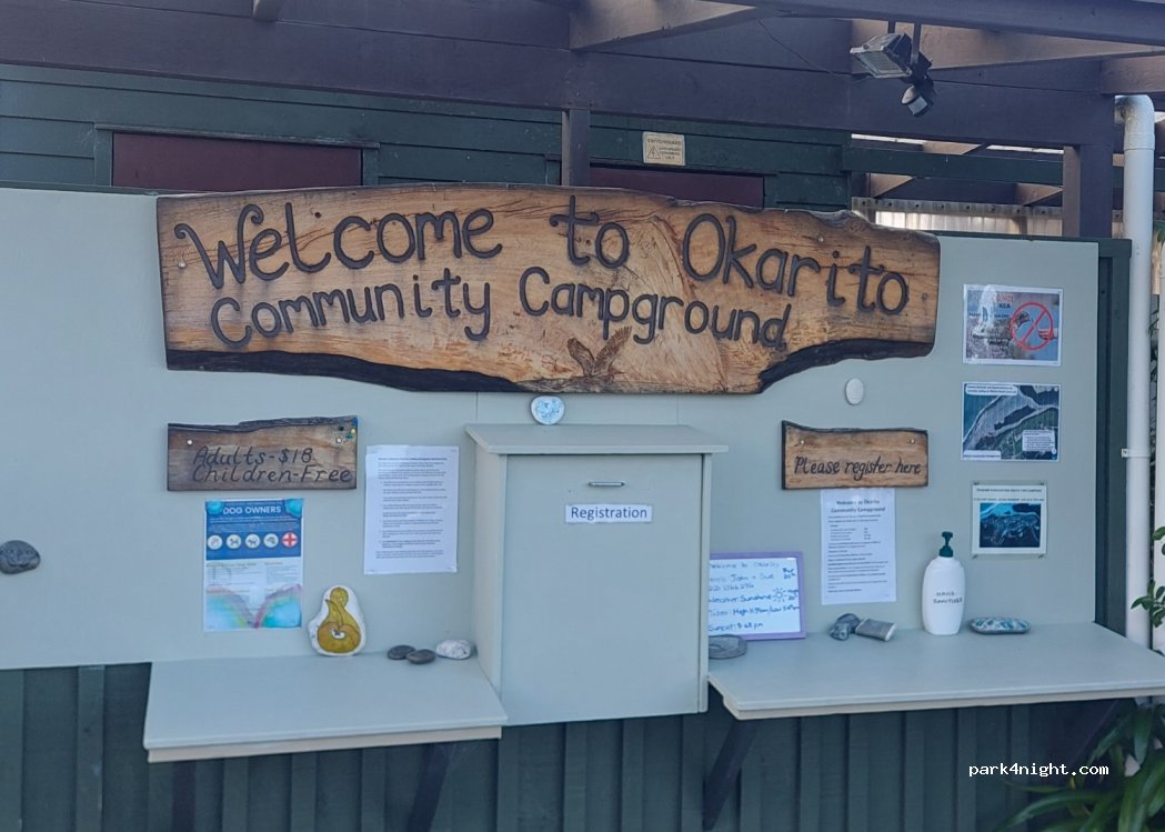 Okarito Low price campsite "Okarito Campground", Surrounded by trees, no view.