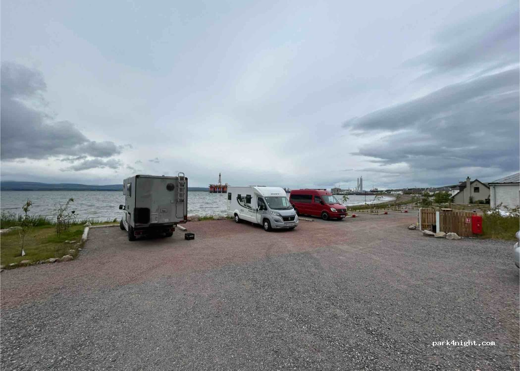 Amazing community funded self-serve stopover. Showers & toilets spotless, views of the oil rigs which have their charm! Easy walk into Comarty & good food at Fisher Town Inn. Great walk from the site around the harbour & up through the woods.