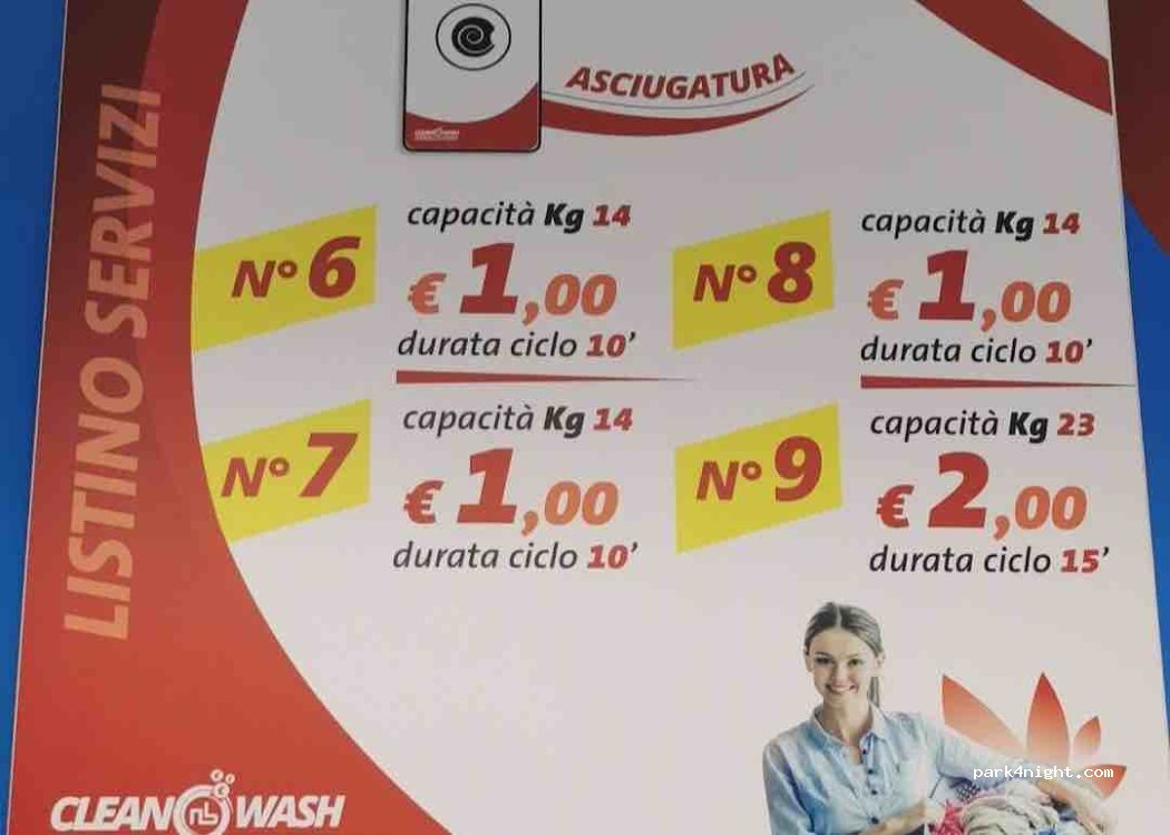 Laundromat with five washing machines and three dryers. Nice and helpful owner. You can bring your laundry in and pick it up later, washed and dried. We didn't do it. Parking is a bit difficult. We stood on the street in front of the salon. Communication is only possible in Italian