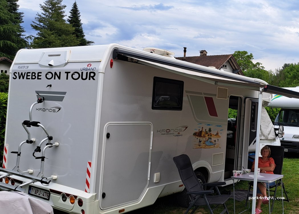 Great location to visit Annecy on the flat cycle paths. Owner super friendly. €17 for the night with no electric. They were busy but then most other sites are closed. Not completely level, may need ramps. They do pack you in. So although ideal for Annecy, it was just a one night stop for me - too busy and parking a little too cramped for me personally.