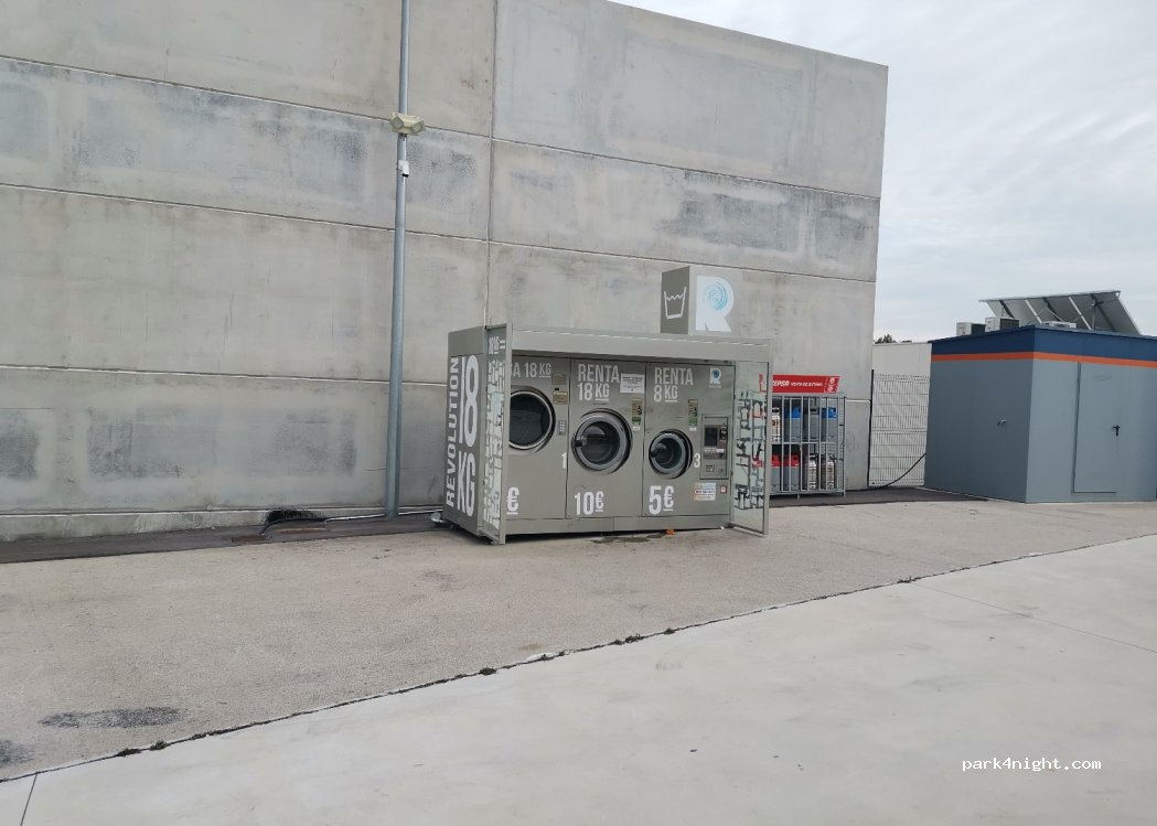 Large truck gas stations with parking spaces. We saw these washing machines by chance. It's rare that everything is occupied here.