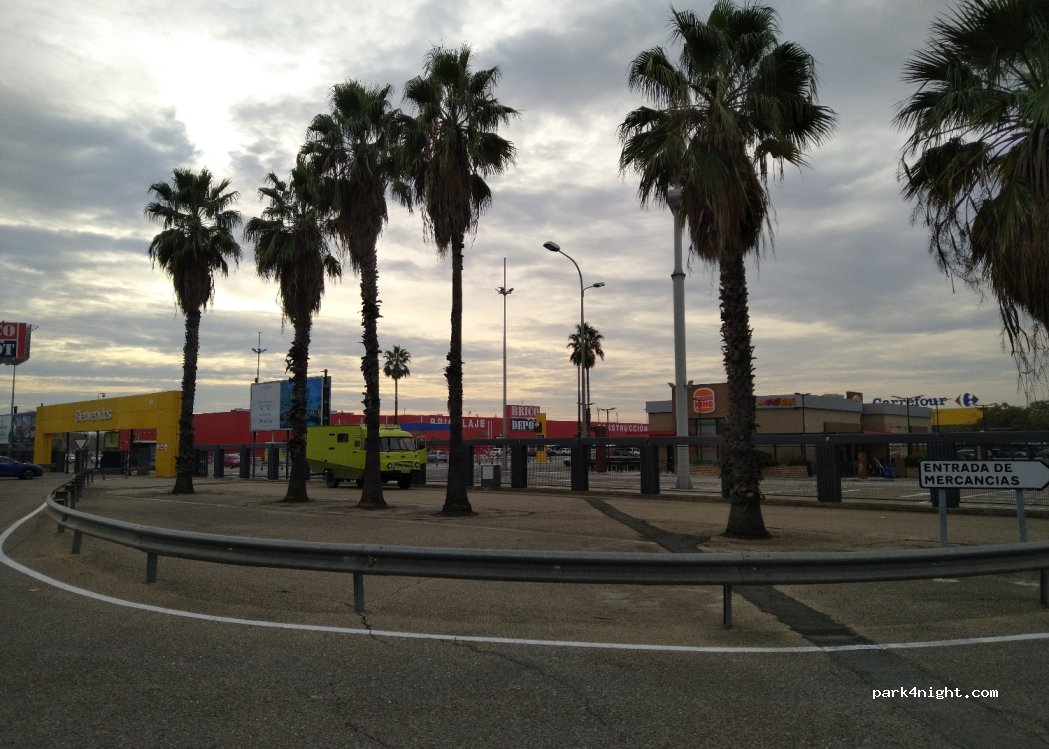 Petite zone inutilisée devant les portes du centre commercial. Entouré de garde-corps, vous vous garez sous les palmiers et bénéficiez du calme la nuit. L'autoroute fait du bruit dès le matin, mais c'est supportable. Lorsque les portes du Centro s'ouvrent, les premières voitures arrivent.