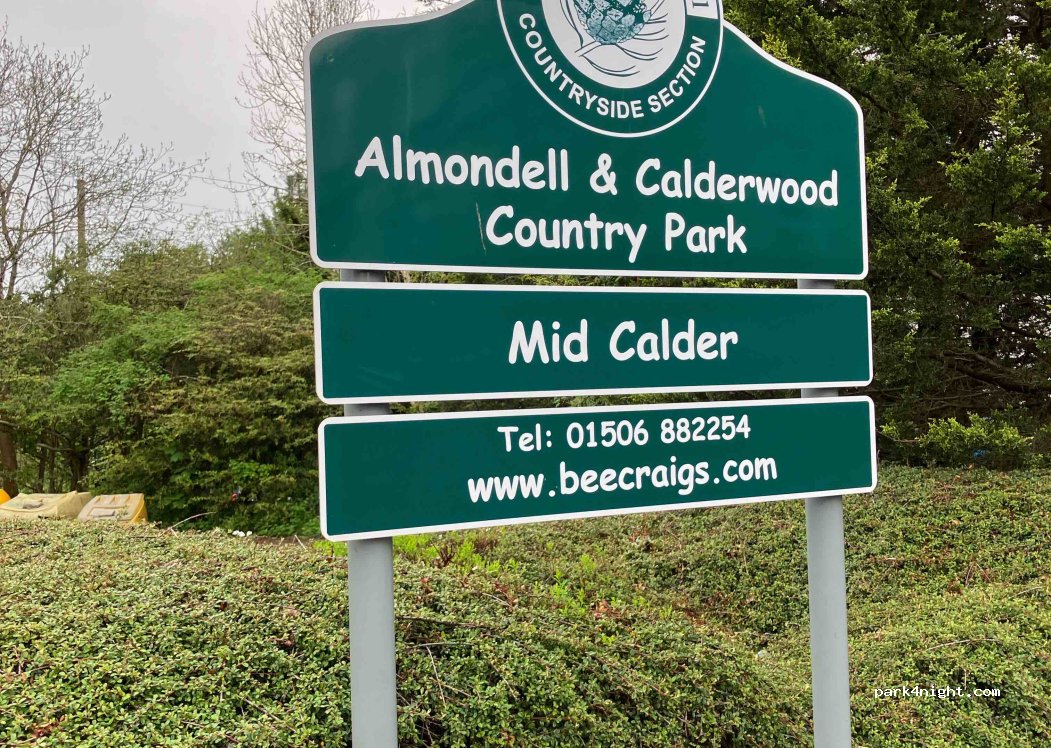 Small car park for Almondell and Calderwood country park. Space for around 8 vehicles. Recycling point and short walk to pubs and restaurants. Stayed here a few times with no issues. Can get busy at certain times with children’s groups/ fishermen. But you can usually find a space after 9pm. WiFi Hotspot available 3G/4G coverage