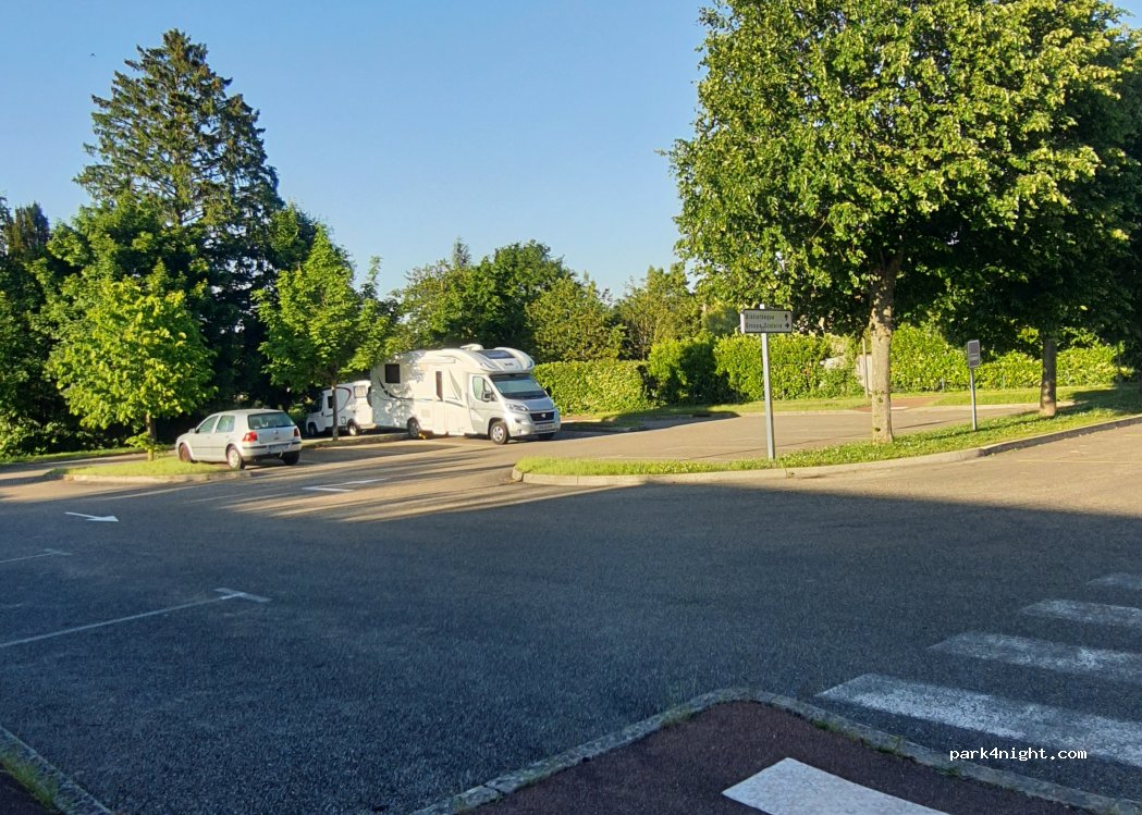 Au top. proche sortie/entrée autoroute, nombreuses places à l'écart de la route au calme et plutôt plat. nous y avons passé une nuit un samedi soir. J'imagine qu'en semaine cela est moins calme à cause de l' école...