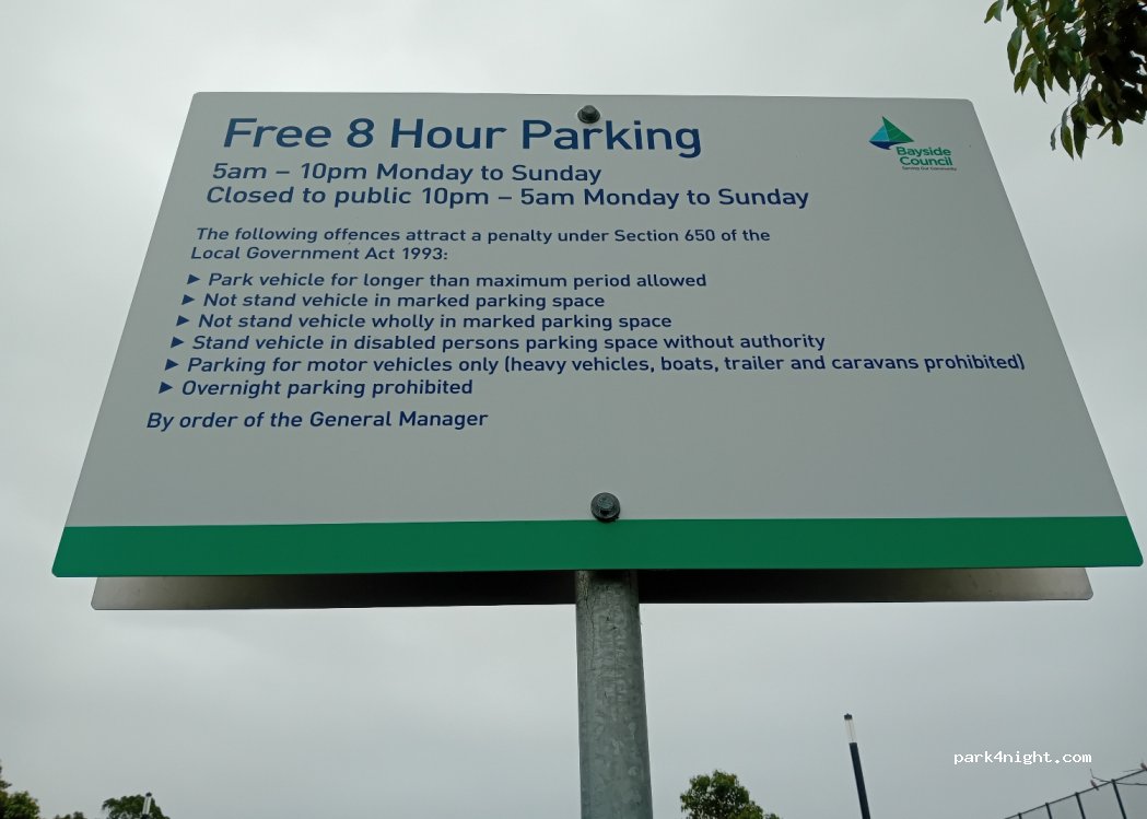 Zone de parking gratuite, panneau à l’entrée. Il y a des toilettes publics, pas incroyable, mais ça fait bien utile.