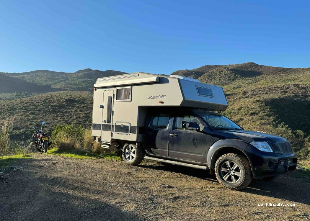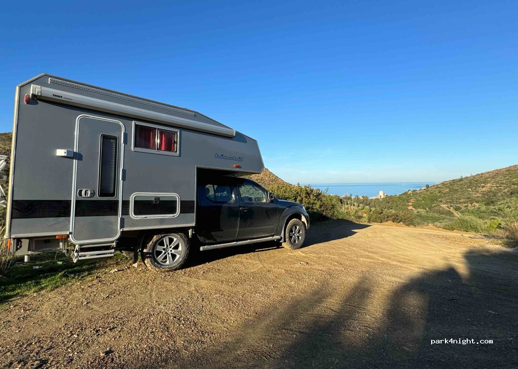 Un emplacement assez plat où vous pourrez passer la nuit sans problème. C'est très calme. L'endroit est pratique si vous souhaitez prendre le ferry à Bejaia tôt le matin. On ne peut y accéder qu'avec un vrai 4x4 et une garde au sol. Route étroite aux virages serrés permettant un maximum de ramassage avec une cabine habitable. Pas de camions d'expédition.