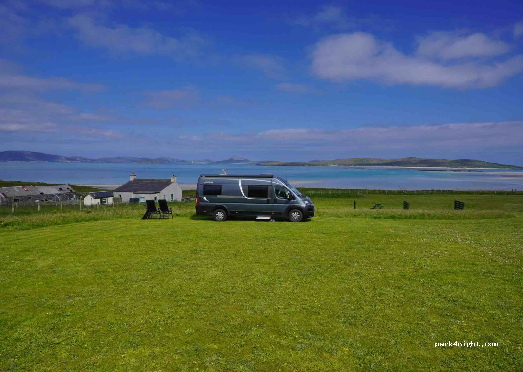Very friendly, stunning views, access to the beach across a field. Highly recommend. Angus the owner is a diamond and Colin who was looking after the site a double diamond. Facilities were superb with a camp kitchen and lounge. Loos with showers were spotless. Not modern but in keeping with the island vibe. Just the best you can get on the Western Isles.