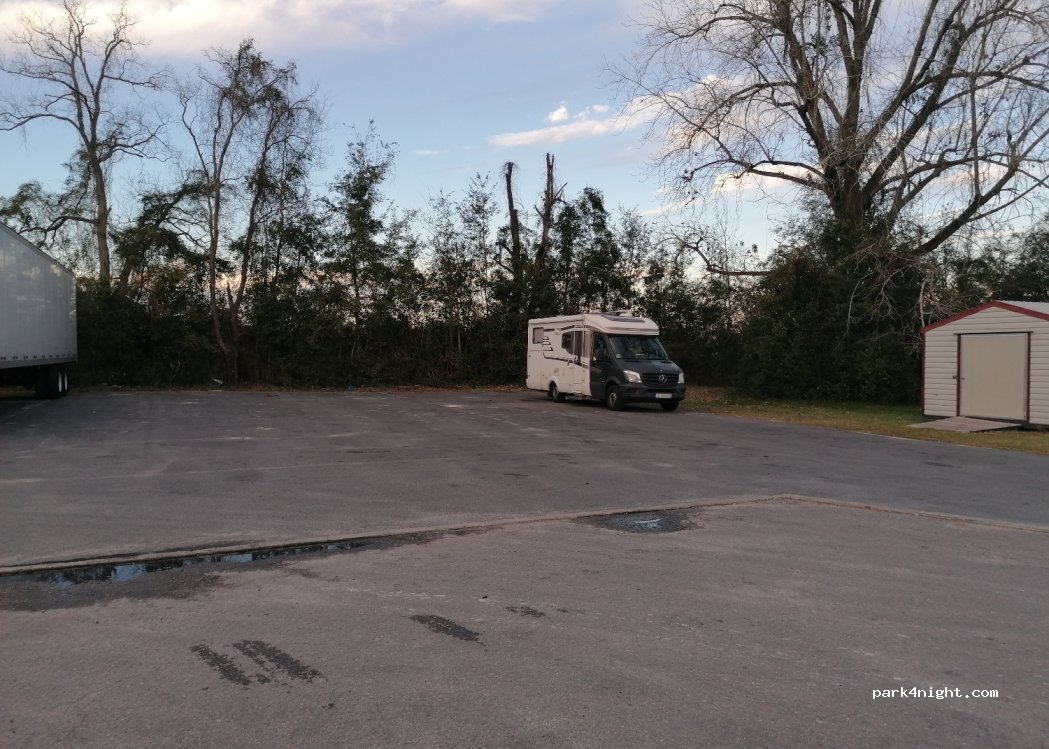 Parking derrière une station service. Bien sûr, c'est plus bruyant ici lorsque les véhicules viennent faire le plein ou passent.