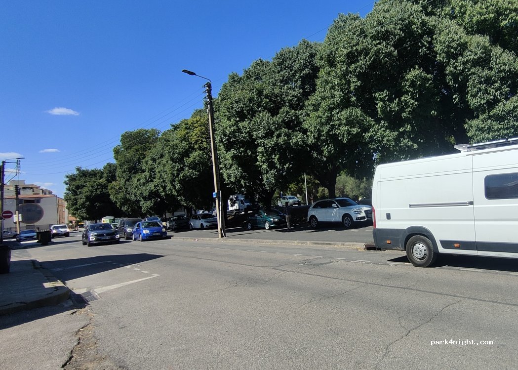 je m y suis garer le vendredi 5 sans aucun problème avec un peu de chance le cc est à l ombre. pasloin du centre ville pour visiter ,nous sommes piétons..