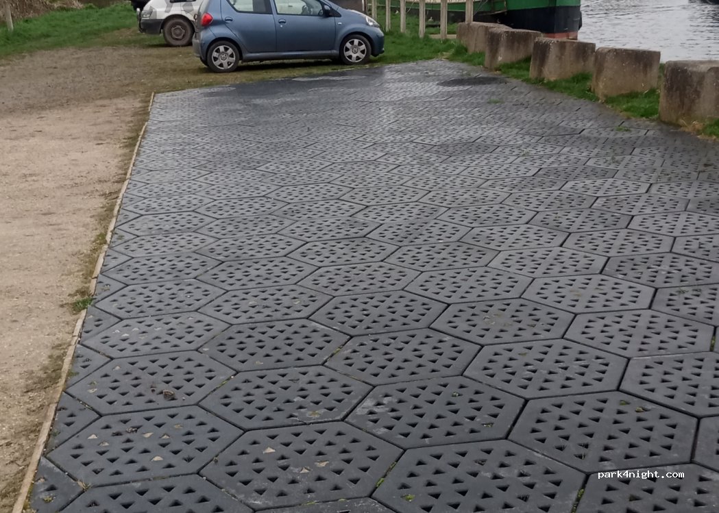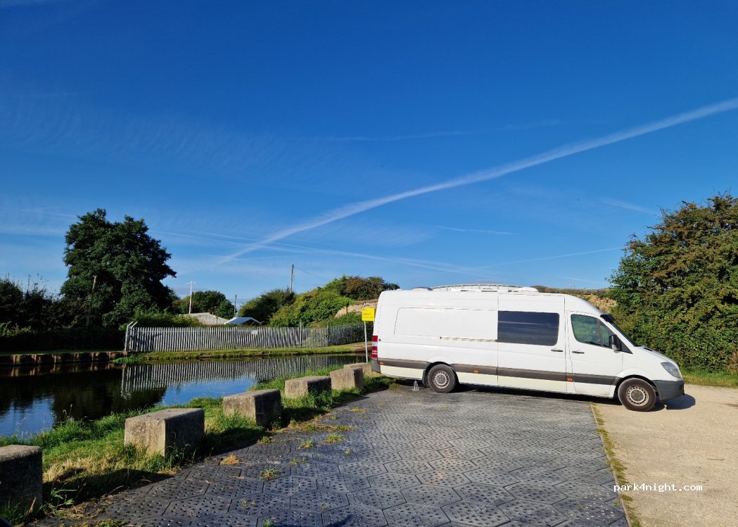 Small car park next to the canal lovely and peaceful nights sleep here. Hardstanding and relatively level.
