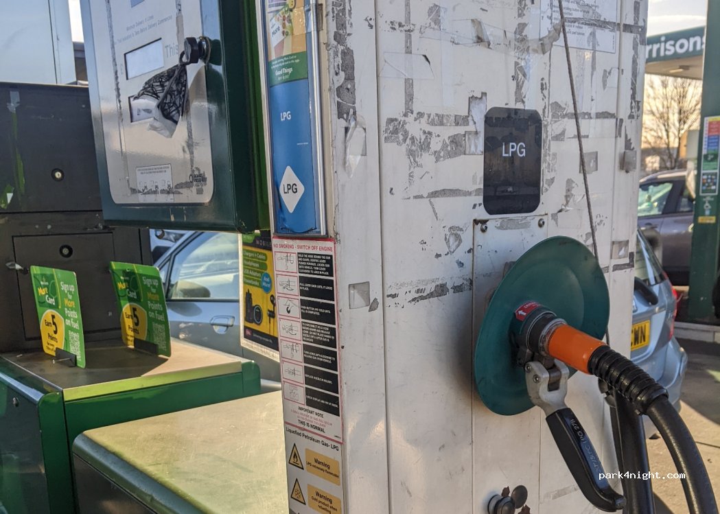 Morrisons petrol station. LPG pump close to M18 and A1 motorway. A single pump is number 17 and is on the lefthand side of the forecourt, accessible on both left and right sides of your vehicle.