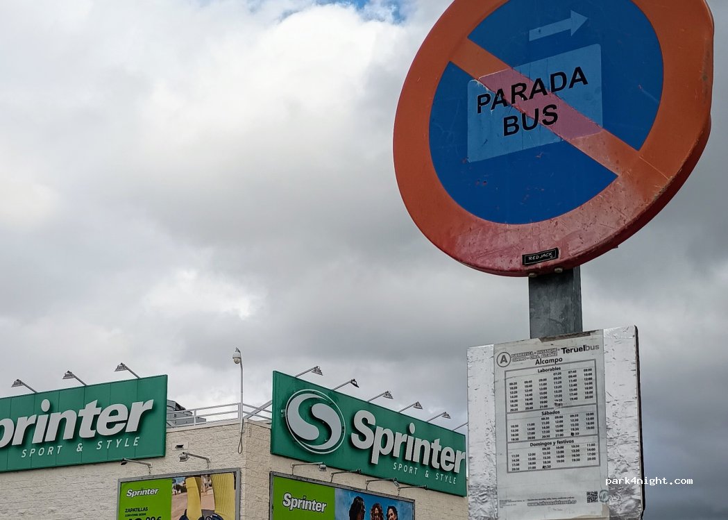 El area municipal está llena (fin de semana medieval festividad amantes de Teruel) buena alternativa, parking plano de asfalto al lado de centro comercial con super mercado y restaurantes