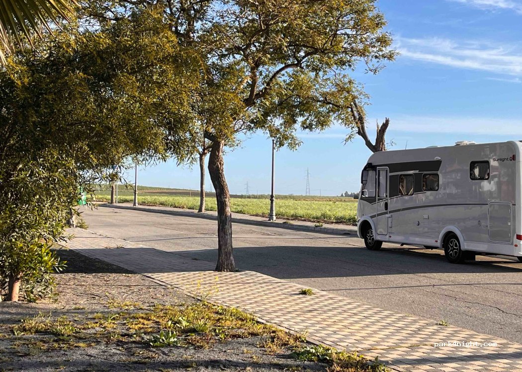 Place très calme pour la nuit. Les habitants autour sont habitués et acceptent sans problème le stationnement des vans ou CC. Abords du champ à côté assez sales....comme dans pas mal d'autres lieux. Bonne étape sur la route du Sud.