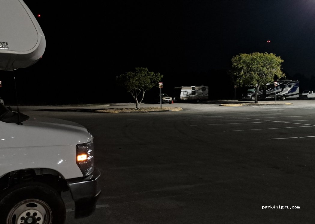 Parking qui accepte les VR la nuit mais qui est payant maintenant (27$). Un panneau indique qu'il faut payer pour rester la nuit . La police tourne toute la nuit pour surveiller.