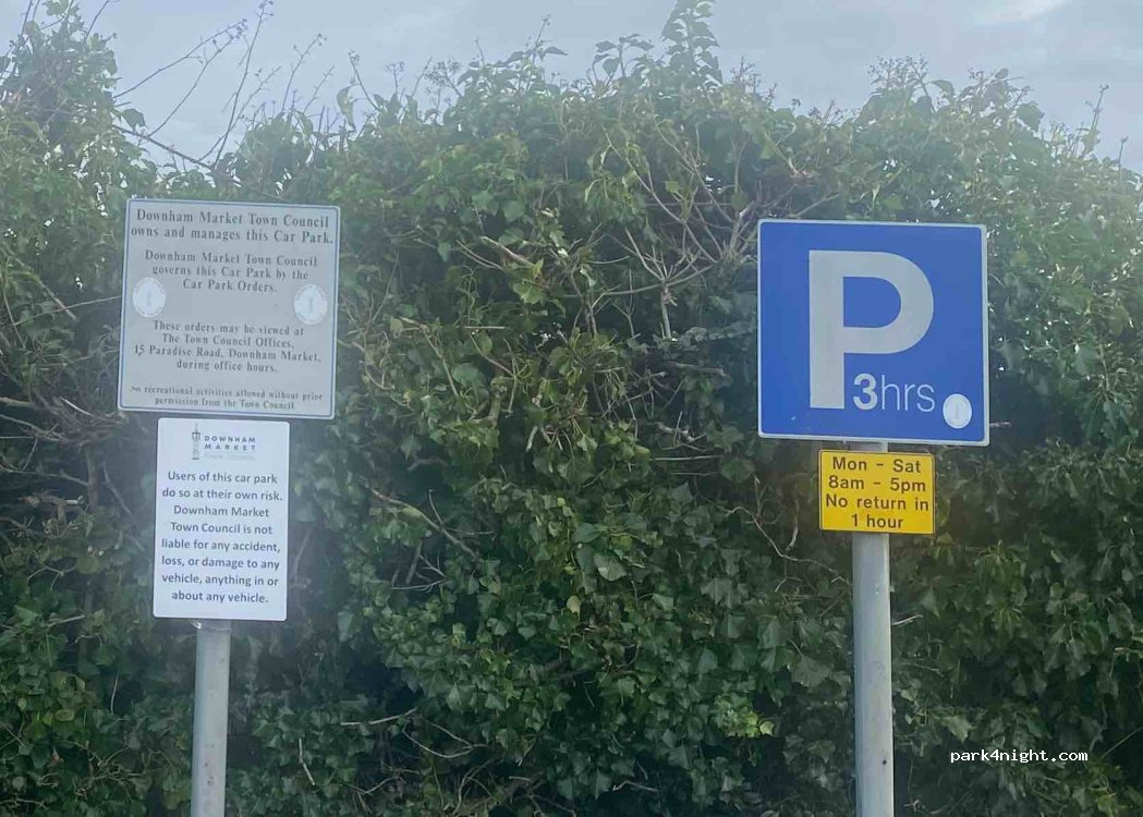 Large car park run by the local council in a lovely Market Town. Unrestricted between 5pm and 9am. 3h max between 9 and 5. So arrive after 5 and you could theoretically stay until 12pm the next day. A few local people parking cars overnight, but a peaceful and safe night’s sleep. Public toilets are a few minutes walk away by the Town Hall, open until 6pm. Height restriction.