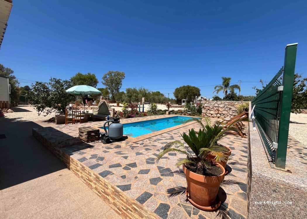 Super aire au calme et bien aménagée, propriétaires très accueillants. 16€ pour 2 adultes et 1 enfant (sans électricité), avec douche chaude et wc et la petite piscine bien appréciable en été ! Peu de places à l’ombre cependant. Comptez 30’ pour rejoindre les plages, mais ça reste un très bon emplacement pour découvrir l’Algarve. Nous sommes restés 3 nuits et nous recommandons à 100%, merci !