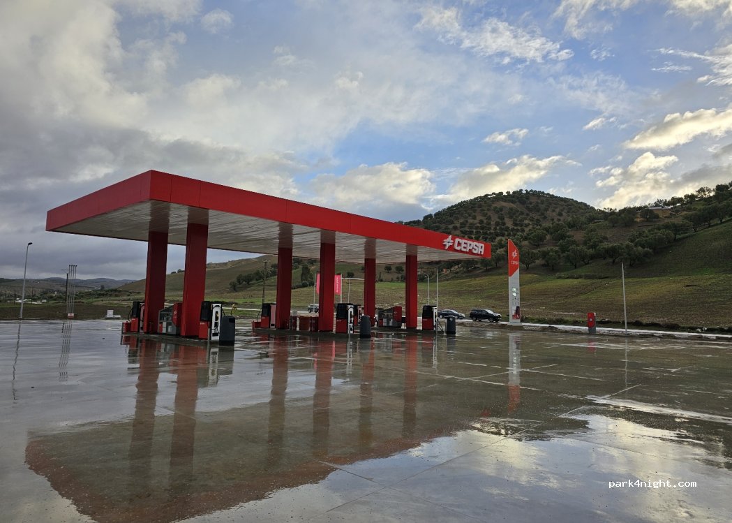 Brandneue Cepsa-Tankstelle. 24 Stunden. Der Tankwart sagte, es sei in Ordnung, zu bleiben. Viele Marokkaner tun dasselbe. Fühlte mich sicher und geborgen.
