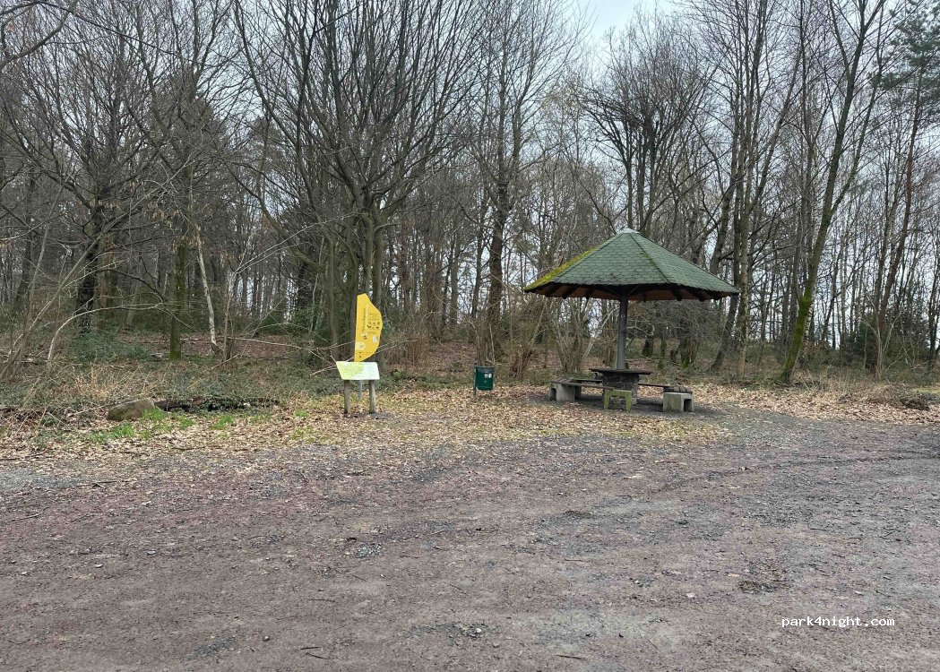 Très agréable parking gravillonné en lisière de forêt avec 2 poubelles, une table et des bancs abrités et un panneau avec circuits de randonnées bien fléchés. En haut de la côte qui part sur la gauche vous découvrirez un joli panorama sur la campagne. Bref un super spot connu seulement des habitués.