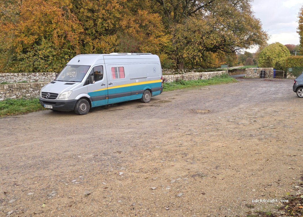 Great peaceful stopover. Can be a little muddy but quiet. You can only use it at weekends and in the school holidays. There is a bin and an honesty box, please use both.