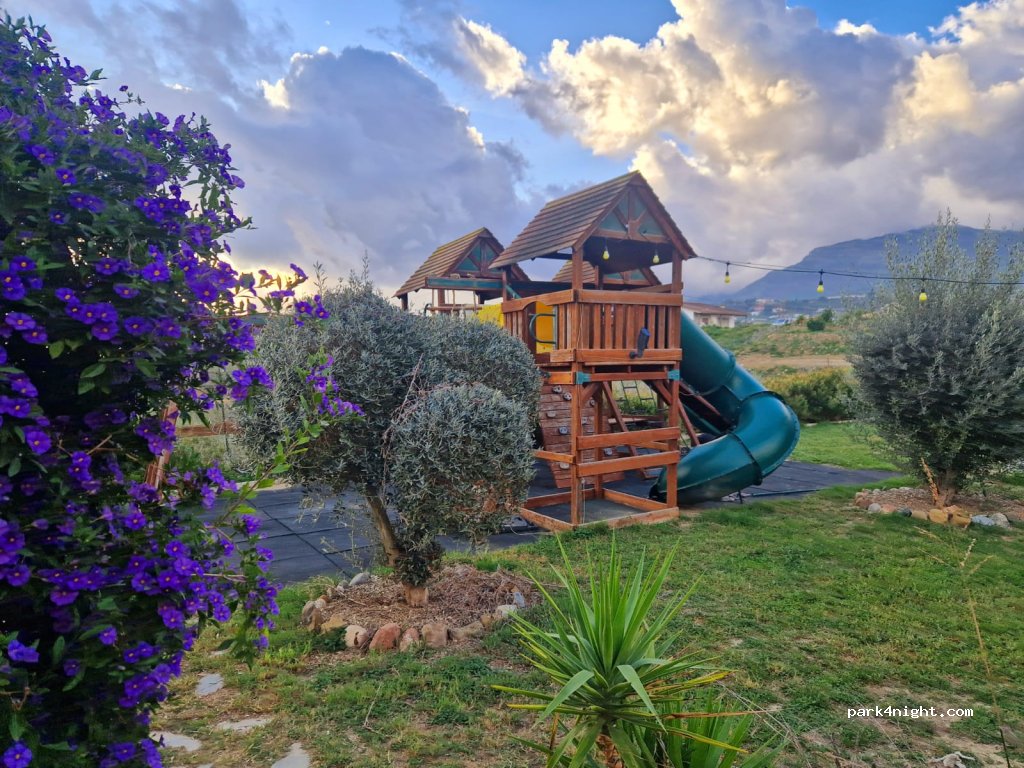 For cooling off, there is a refreshing swimming pool with a slide, perfect for both adults and children to enjoy. The professional play park ensures that even the youngest guests won't be bored.