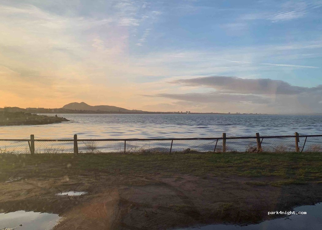 Aire de stationnement des locaux. Juste un espace libre pour l'accès sur la route au bout et certains stationnements interdits sur le bord. Heureusement garé sur la route et accès à une magnifique réserve naturelle - les logoons de Musselburgh.