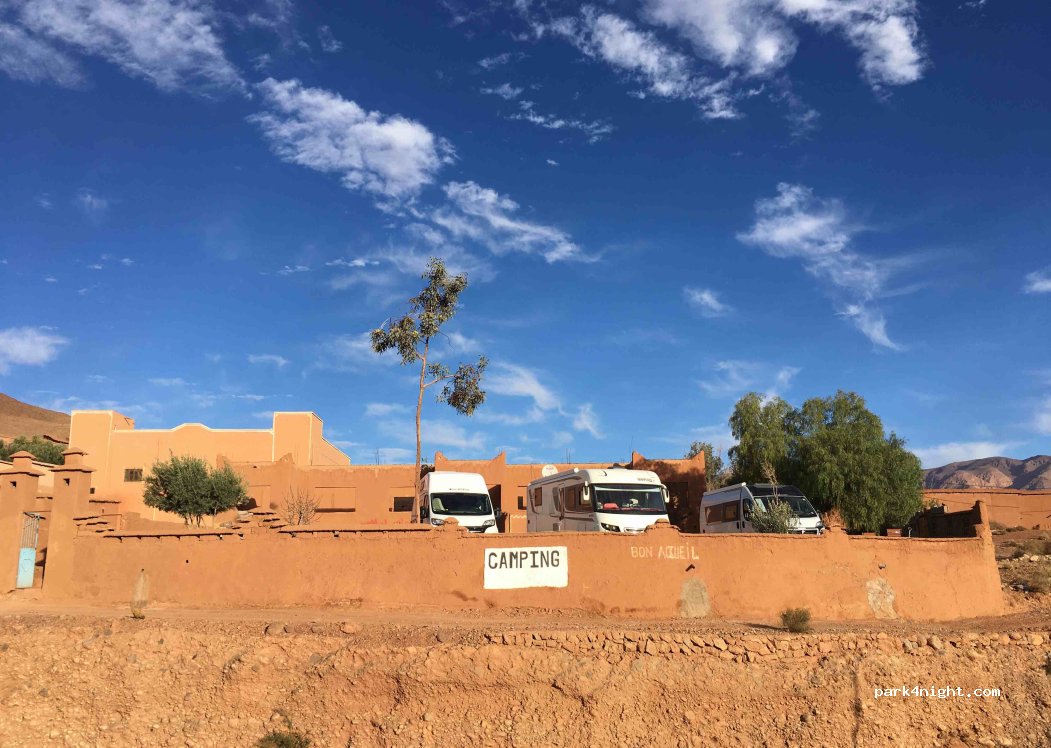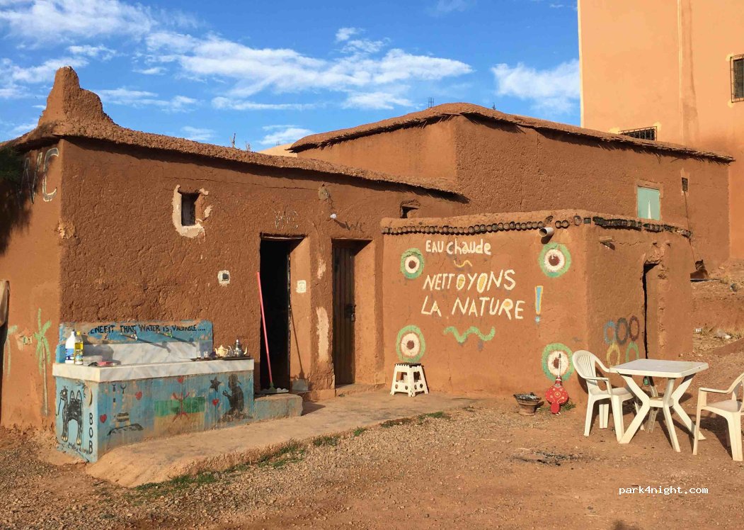 Installations sanitaires moyennes, gardée par un chien qui est attaché jour et nuit. Possibilité de cuisiner sur place, mais la cuisines est sale et encombrée! Géré auparavant par une femme appréciée, aujourd’hui c’est Jamal, qui n'a pas la même réputation dans le village. Juste devant les pâtes de singe, mais 50 Dh pour le véhicule et 25Dh par personne, peut importe l'age, ça fait très chère!