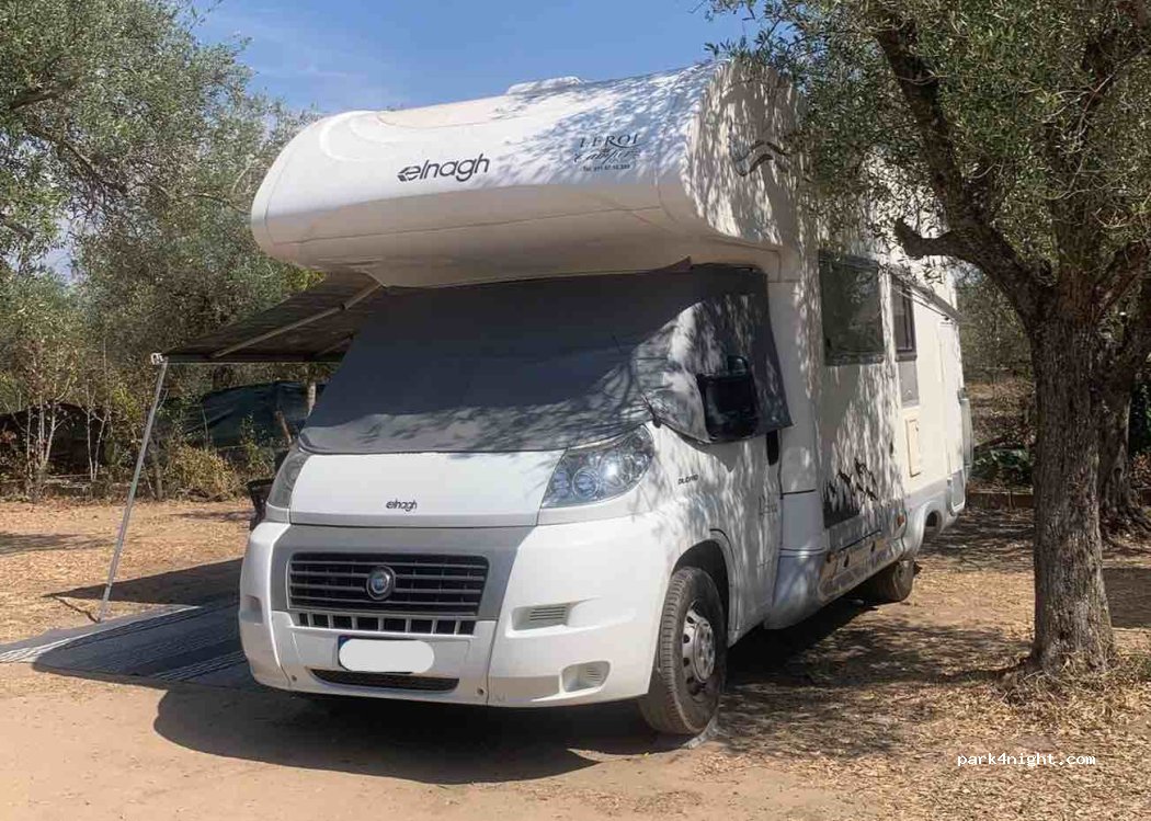 Man steht ruhig in einem Olivengarten, 2,5km bis zur Altstadt. Die Besitzerin ist sehr nett. Grau- und Schwarzwasser kann entsorgt werden. Kein Trinkwasser. Mit uns standen 5 Camper, 1 Dachzelt und ein Wohnwagen dort. Es gibt nur ein Bad mit Dusche und Toilette für alle. Das Bad wurde zwar gereinigt, allerdings gibt es dort viele Spinnweben. 24€ die Nacht für 2 Personen inkl. Strom gezahlt.