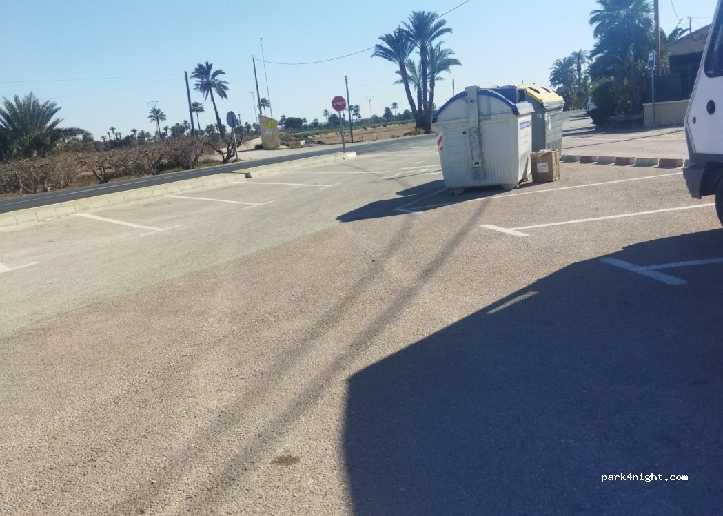 pasamos una noche, al principio ruido por la carretera pero después silencio total, al lado hay el bar Cachito con buenos cafés y bocadillos generosos, hay 1 container para la basura y caminos para pasear a los perros, no hay sombra