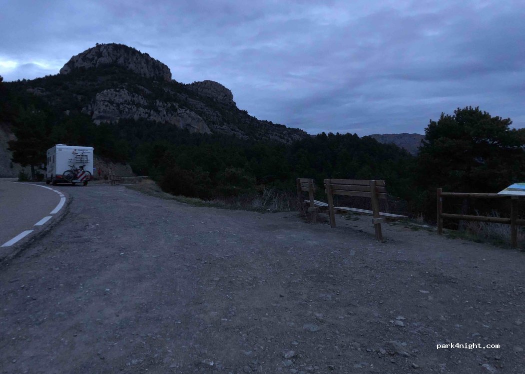At the Col de Boïxols, small clearance at the side of the road with 4 benches and orientation table. Splendid view. Place for 3 motorhomes