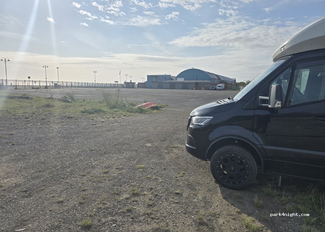 Secure seaside destination, key collection for entry/exit, large car park used by motorhomes and vans 7pm gates closed
