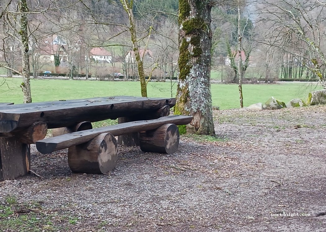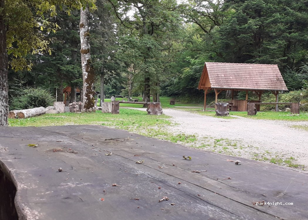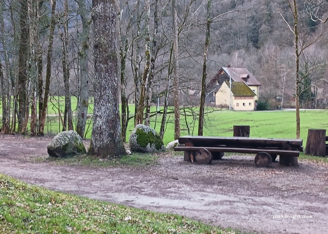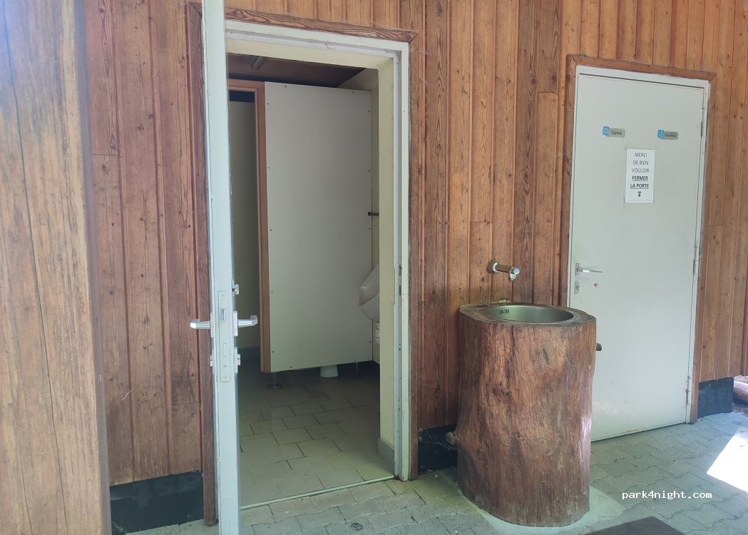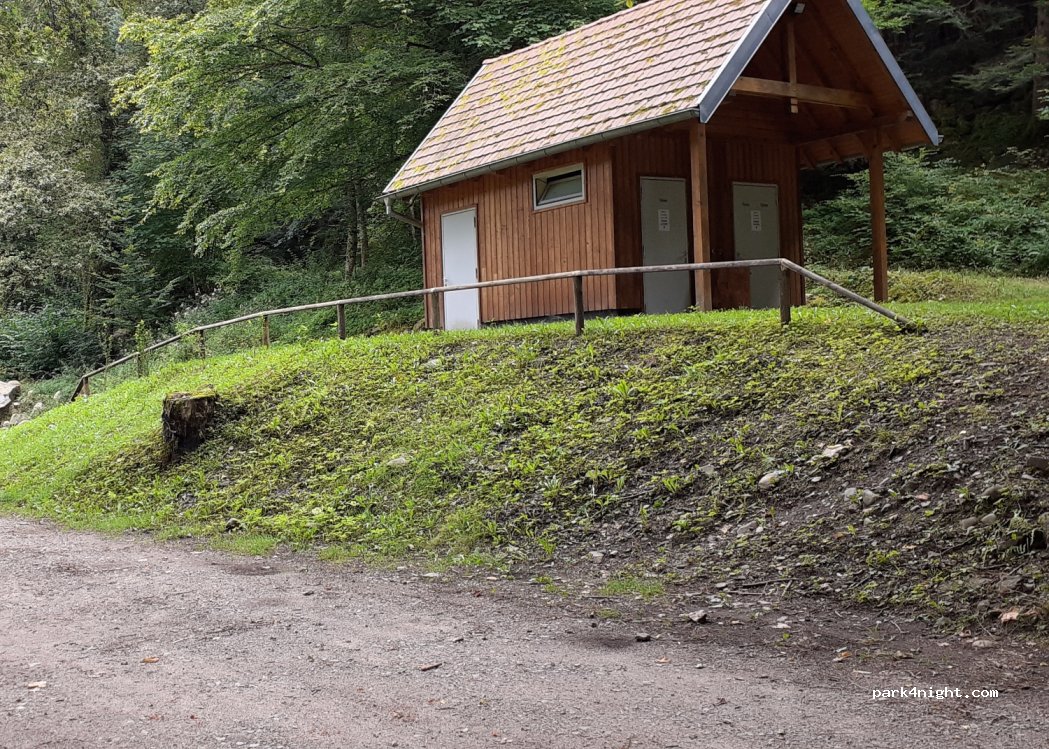 Super location, very silent in the night. There are tables outside, where we had dinner and breakfast. There is also a public toilette, which was also clean and well maintained. Lots of shadow, easy access also with big camping cars, flat ground.