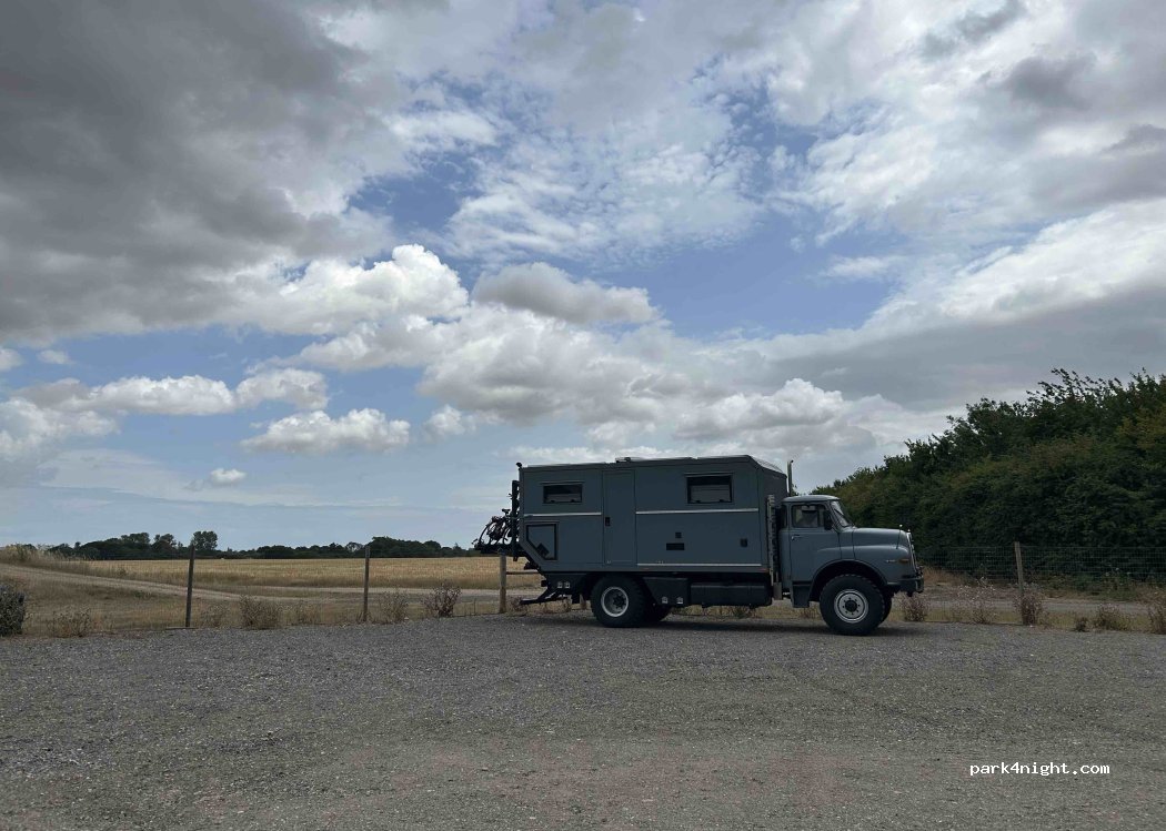 Really useful park up for the night, less than 20 mins from the port. Arrangements and directions very easy and clear. It’s a quiet, peaceful spot before, or after a busy drive north for us. The access road is single track with few passing places, with occasional trucks/tractors also using it. £10 very reasonable, even better if water was available!