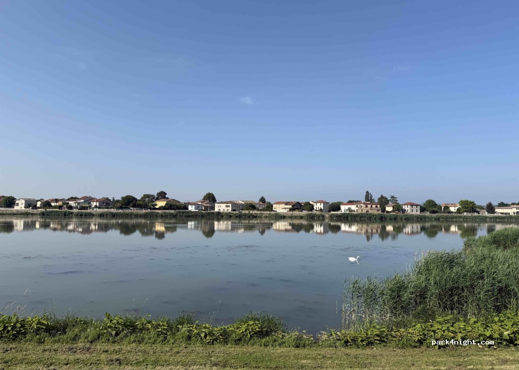 très belle aire neuve utilisée pour les services car proche de la maison mais je recommande vivement pour y séjourner, sur l'itinéraire de la via fluvia bravo pour cette création !!!!