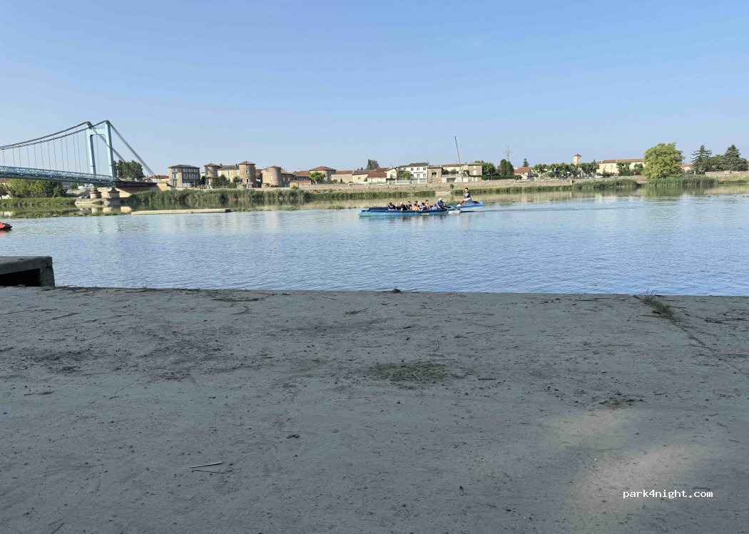 Jolie aire (6 places) très calme.. le Rhône en face. Eau , vidange. Entrée en passant par la rue de l’île .. un peu difficile hier > un proprio avait garé sa voiture d’un côté et côté maison des gros tas de désherbage. L’entrée de l’aire est juste à gauche avant le panneau interdit aux CC ( piste cyclable) aux abords du fleuve 2 cygnes et des poules d’eau ont leur spot de nuit !!