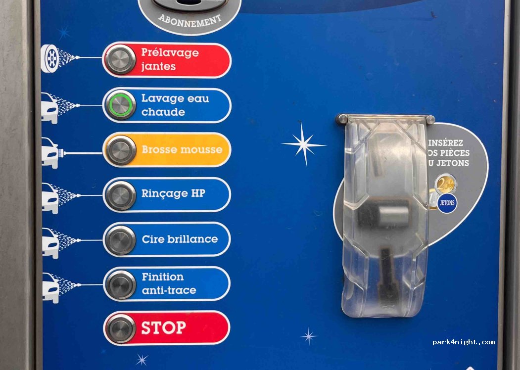 Station de lavage pour voiture et camping-car. Pas de maximum de hauteur. Pas de toit, avec une passerelle (qui mériterait d’être un peu plus haute), à proximité du centre Auto E. Leclerc de Seclin.