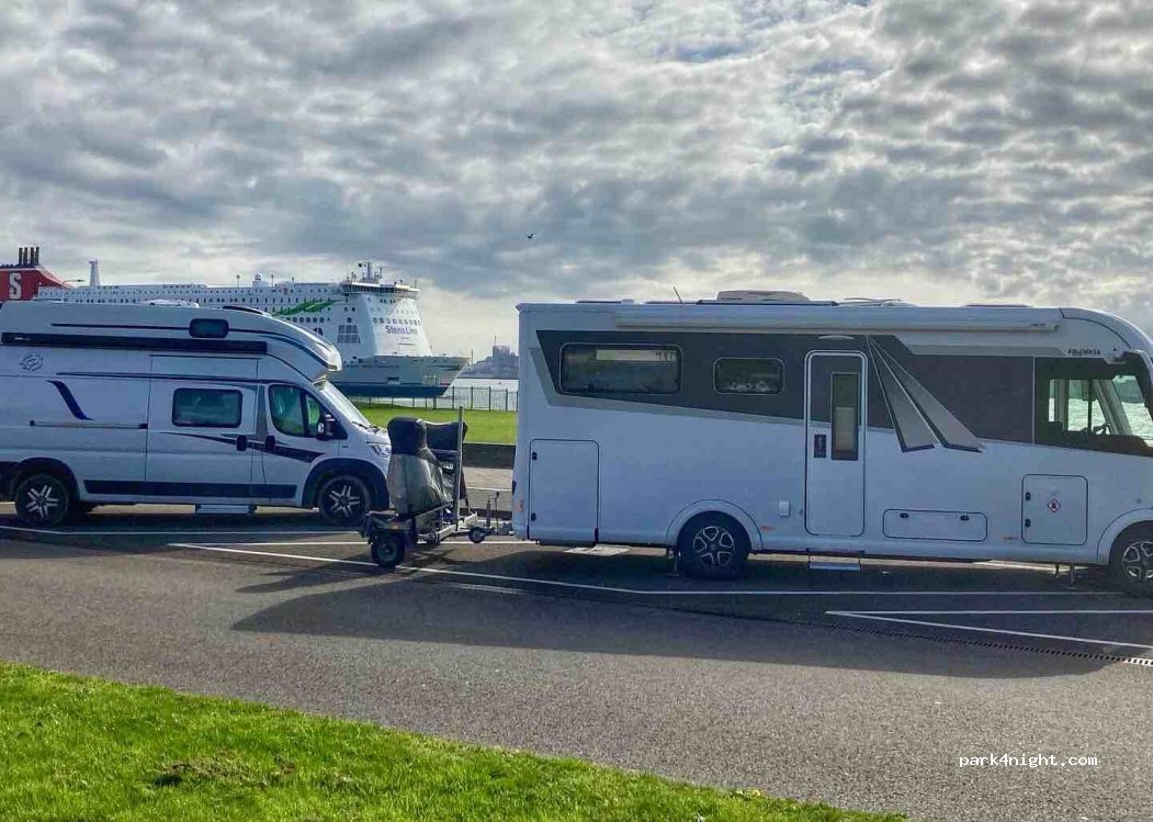 nice place to stay during the day. But there are only 5 places to stay overnight. It was full and there were people waiting for the spots. We got info from the other campers that they stayed next to the overnight spots and were fine, but we got a ticket in the morning 160€. Nice place to watch the ships though.