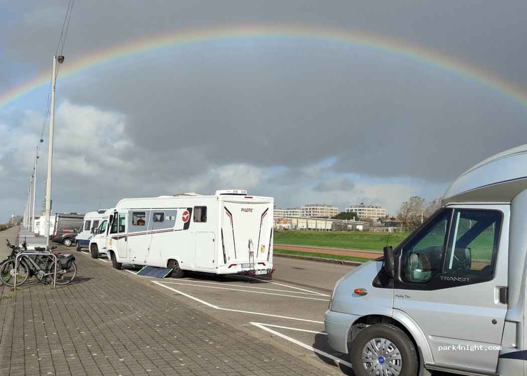 Toller Parkplatz für eine Nacht, evtl auch 2. Es gibt 5 offizielle Parkplätze, wenn man sich aber ordentlich auf die anderen Plätze hinstellt, sagt die Polizei nichts. Es gibt dort ein Restaurant/Imbiss Namens Vispaleis, wo man sehr leckeren Fisch essen kann. Es gibt KEINE Toilette, höchstens in besagtem Imbiss bis 22:00 Uhr. Toller Blick auf den Hafen und sehr ruhig, alles in allem zu empfehlen