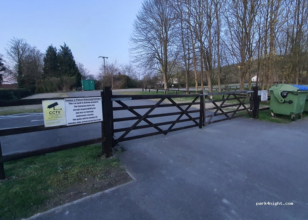 C'est un parc calme, loin des maisons. Le parking est destiné à la gare de Chinnor. Le parking est divisé en deux, une partie verrouillée pour la circulation des trains et un deuxième parc, goudronné, pouvant accueillir environ 12 véhicules. Il n’y a aucune restriction de hauteur ni porte d’accès verrouillable.