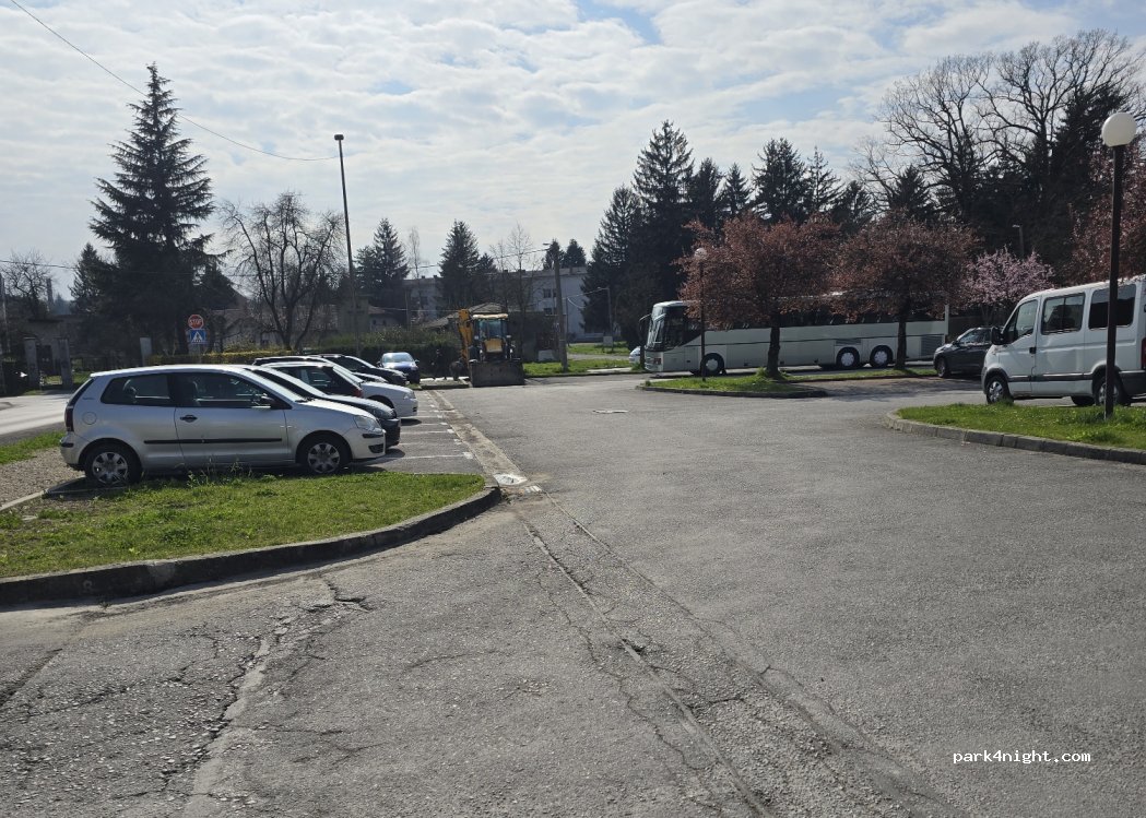 Parcheggio tranquillo, ideale per una notte. Si sentono solo pochissime macchine passare sulla strada, un po in pendenza ma per una notte va benissimo