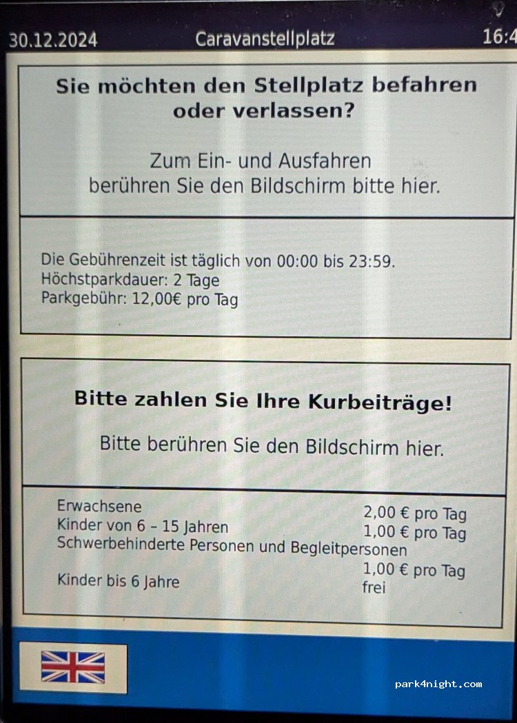 Mustergültiger Platz. Dankeschön an die Stadt. Alles auf Top Niveau. Preis ist okay. Plätze sind groß genug um auch mal die Markise auszufahren. Schranke öffnet nur, wenn die Kurtaxe bezahlt wurde