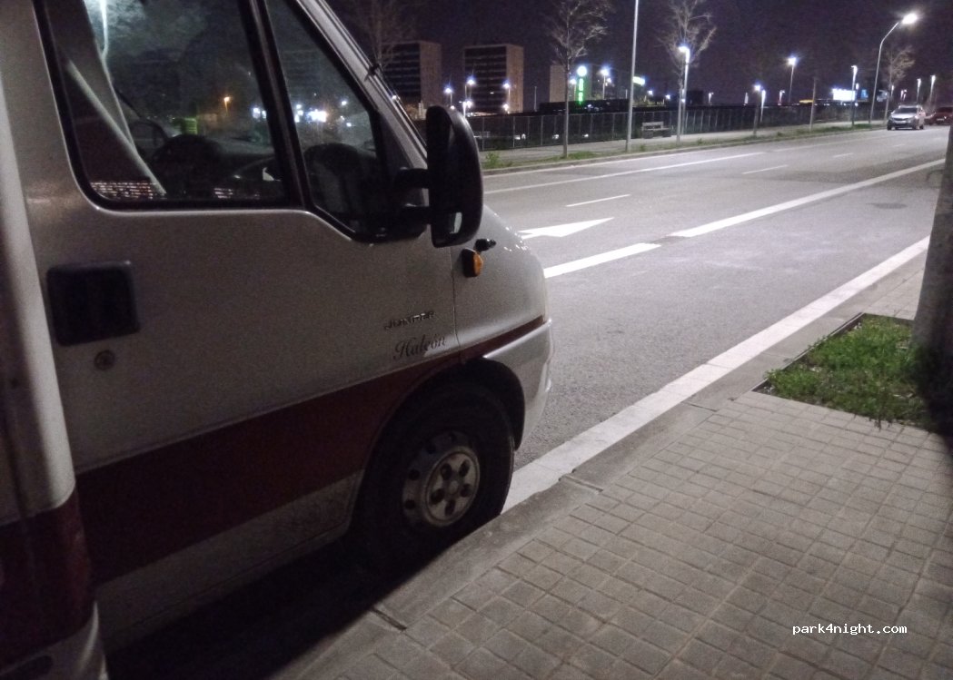 Di fianco a un centro outlet; toilettes e bar sino alle 22 (21 d'inverno); tranquillo e vigilato. Si può sistemare il mezzo anche nel parcheggio del complesso commerciale, nella zona riservata a bus e moto; il mattino successivo però ci sarà una sola uscita aperta fino alle 10. All'altra estremità del centro outlet ci sono autobus comodissimi; la linea D80 arriva in 20 minuti in Plaza d'Espanya.