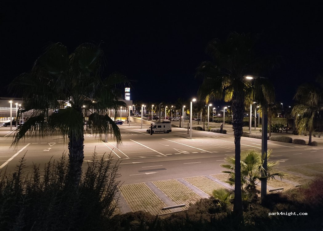 Wir haben unser Auto tagsüber auf der Rückseite auf dem großen Parkplatz abgestellt und sind mit dem Zug in die Stadt gefahren. Platz ist Videoüberwacht. Zugfahrt ca 22 min, 5,20€ hin und zurück pro Person. Auf der Rückseite sind am Seitenstreifen ebenfalls Parkplätze. Es lief die ganze Zeit Laute Musik, daher wollten wir hier nicht übernachten. Sehr sichere Gegend.